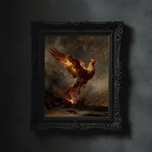 Bring powerful energy and renewal into your space with this stunning phoenix artwork, captured mid-rise in glowing reds, golds, and embers. This piece instantly becomes the focal point of any room, filling it with warmth, movement, and the emotional impact of rebirth and strength.